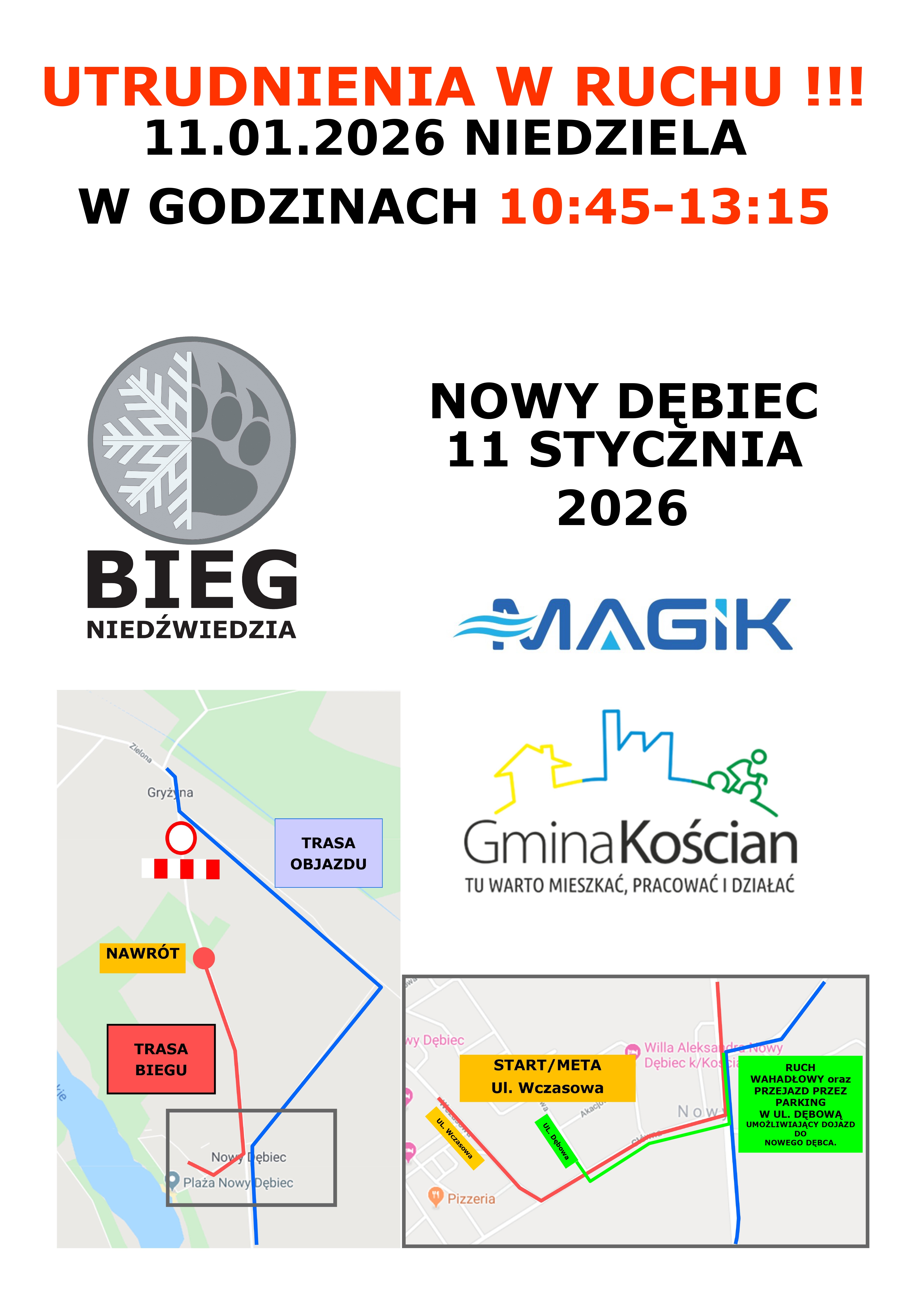 Parking dla zawodników znajduje się przy ul. Głównej (po lewej stronie) na trawiastym terenie (wyjazd z parkingu możliwy w każdej chwili) oraz przy ul. Głównej za skrzyżowaniem z ul. Wczasową po lewej stronie wzdłuż ulicy ( wyjazd z parkingu po zakończeniu biegu).